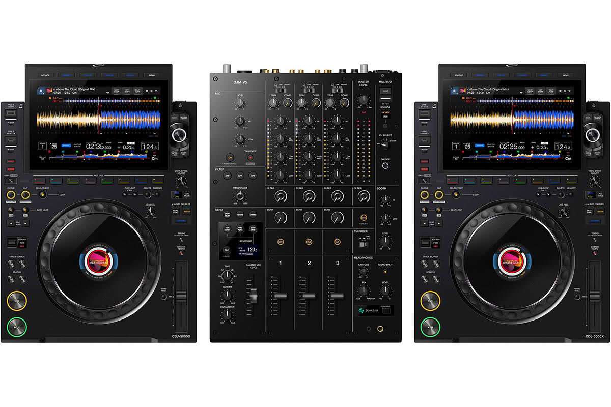 This DJ performance bundle combines two industry-leading components — the AlphaTheta V5 3-channel professional mixer and Pioneer CDJ-3000X players — for a powerful, creative, and reliable DJ setup suited to clubs, festivals, and high-end events.