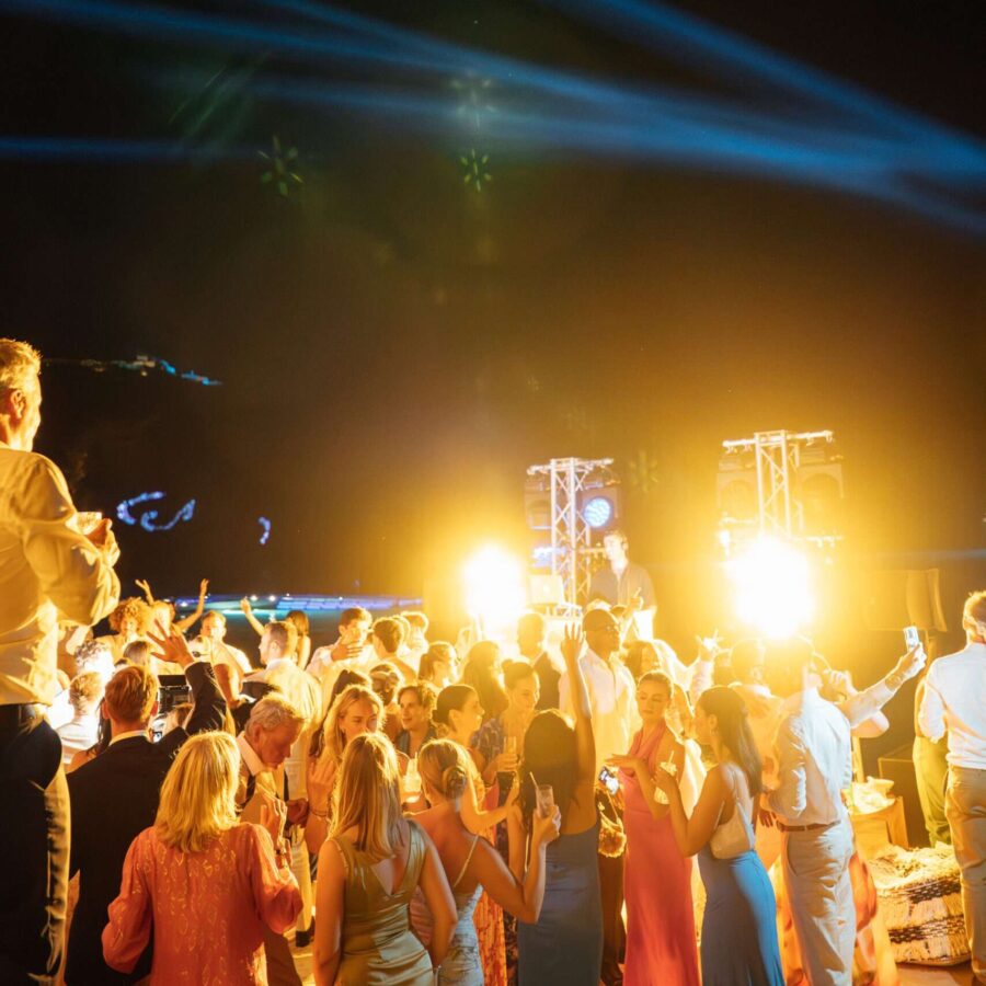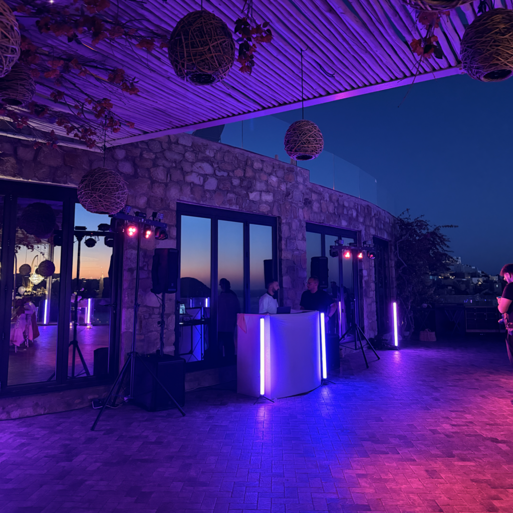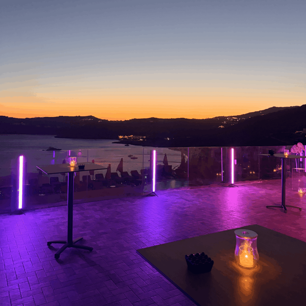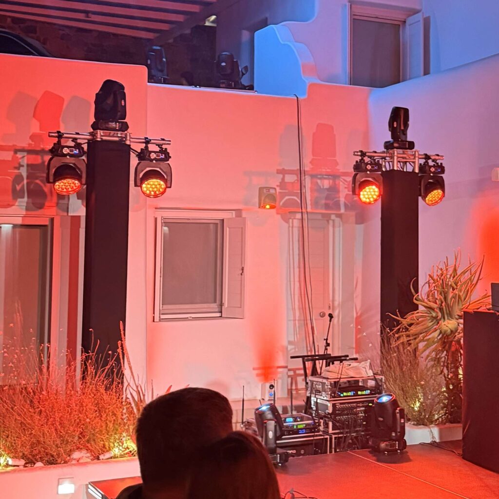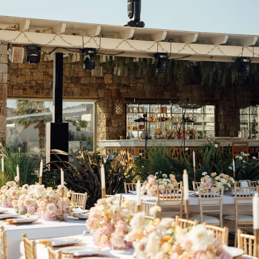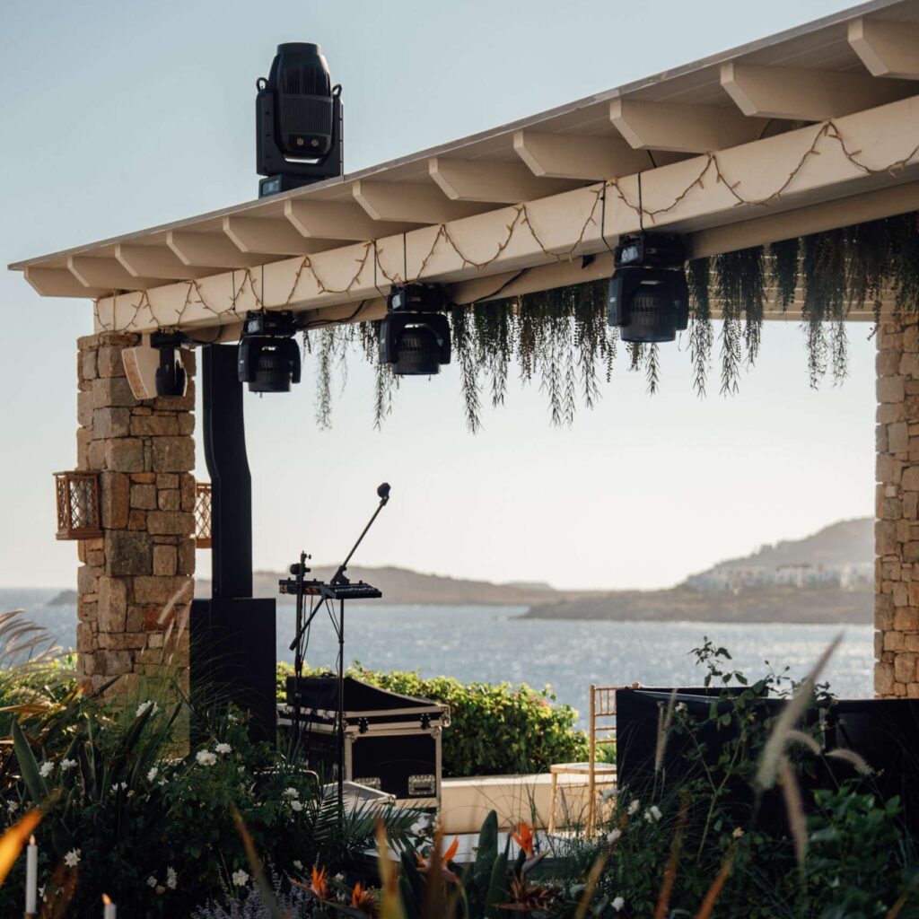 Crystal-Clear Ceremony Audio: From the first “I do” to the final toast, our Shure wireless microphone systems and discreet L-Acoustics reinforcement ensure every word is heard with perfect clarity, regardless of the Mykonos wind.